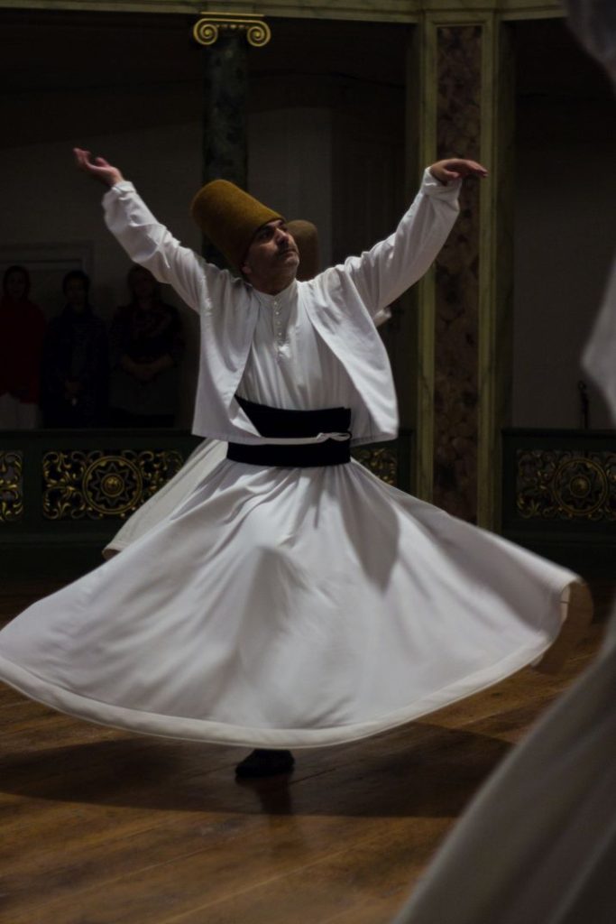 On our third day we went to see the whirling Dervishes in the Mevlevi Cultural Museum. Although we couldn’t understand the words being said during the ceremony, the music, songs and movements were very meditative. That is, of course, the whole point of the whirling – meditation through rotation akin to that of our Solar system. Although whirling is the most well-known aspect of the ceremony – and it is truly beautiful – the whole thing is built on the concepts of rotation and repetition. It seemed that the dervishes themselves were lined up from the youngest in the back to the oldest in the front. Everything they do has symbolic meaning – from the hat on their head representing the tomb of the ego to how their arms are open while whirling, one directed towards the sky and one towards the earth.
