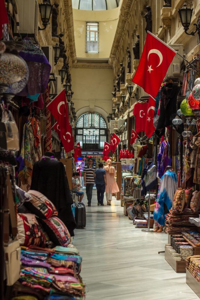On Friday we went to the Grand Bazaar… for the 3rd time. We’d been there twice already, but since it’s the holidays, we had the opportunity to stare at the closed gates. So third time’s a charm, we thought, and we were right. It was big and everything, but I think since it was already our third attempt our expectations were probably too high so we were left underwhelmed with the whole thing. We’d seen most of the things sold there in other shops around Istanbul already so there wasn’t really anything new to look at, just the context of the bazaar. The building itself is interesting, with domed ceilings and old painted ornaments, and it felt like quite the maze. Since the stands aren’t all unique – there were different shops selling the same things – you never really knew if you’d been on that particular corner or if it’s a different set of bowls you are looking at. Despite the lack of a wow effect, Jamie did buy a hat (he looks like Huckleberry Finn now) and I can go home with an extra pair of shoes, so we can still call it a shopping success.