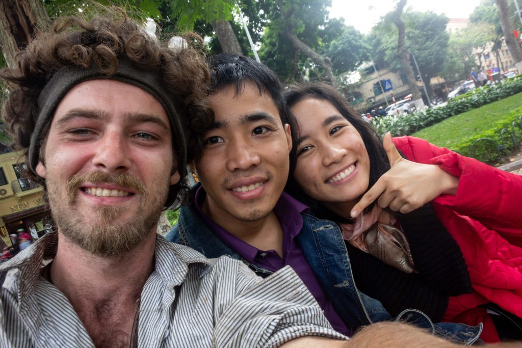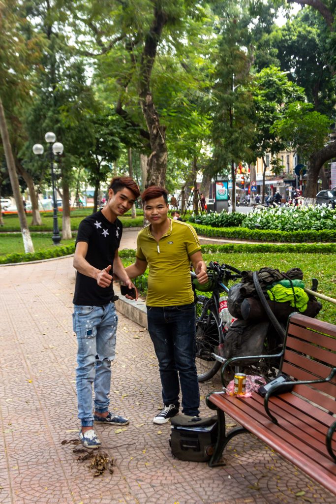 I arrived at the huge lake in the centre ten minutes later where I finally plonked my ass down on a bench in anticipation of my celebratory beer. It was a great feeling indeed and one that I would have to share by many passers-by as I sat there. First two Vietnamese guys came over to have their photo taken and then two students wandered over in order to practice their English. Soon after this, another two students wandered over after which I gave them an impromptu English lesson as they recorded me. I had to hold out these cards with very simple words written on them whilst I said each word out loud breaking it down into its syllables. Not something I had expected upon my arrival here but it was fun nonetheless. The girl even invited me to stay with her family on the outskirts of the city If I could come and give her class a quick lesson. We all swapped contact details before I felt it was time to find the hostel I had booked and………