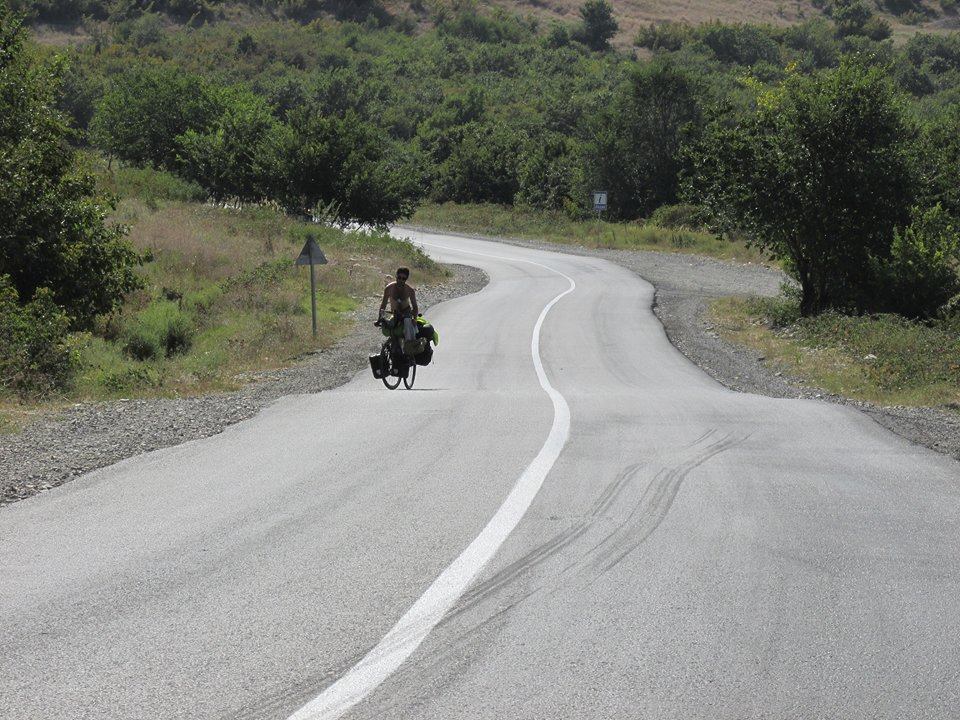 The lady whom owned the house/café/restaurant was very nice and even offered up her daughter in marriage as she wanted her to go to England. I’m sure she wasn’t being serious. I politely declined anyway. As was the custom here, we offered payment but this was swiftly declined and we were sent on our way with a huge bag of hazelnuts. A very nice offer but for myself at least, the last thing I want to be doing in 40 + degrees is sucking on a dry hazelnut. Later, knowing that some seriously steep climbs were coming, I tried to ready myself. When the first finally arrived and but a few turns from the top, I once again blew up insisting that it was not possible to climb this kind of gradient in this heat. I threw my bike against a tree and plonked myself down on the ground wondering how on earth I was going to climb the next one as it was even steeper.