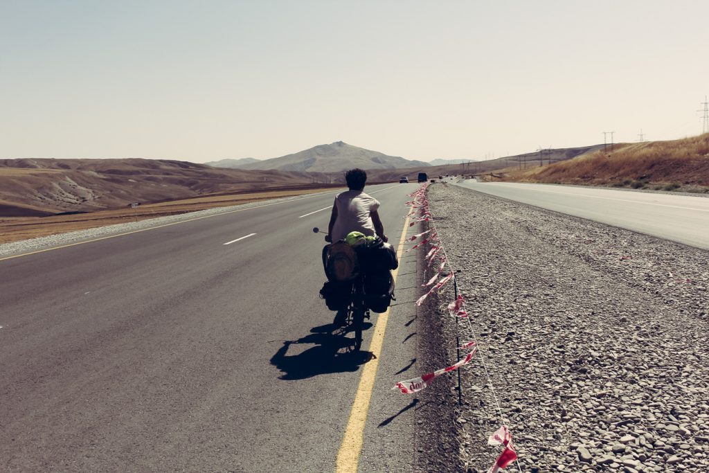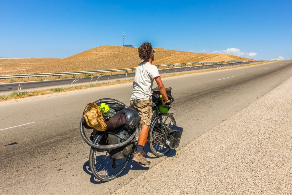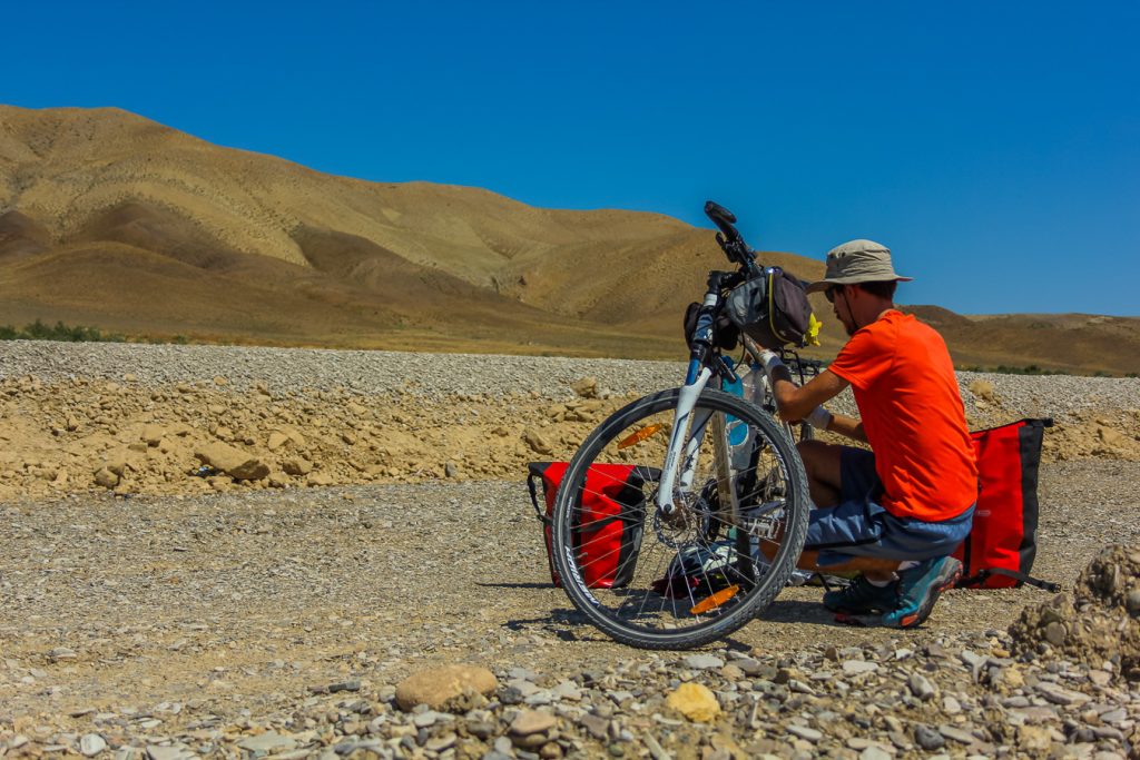 Cycle touring through the desert in Azerbaijan. It’s not easy