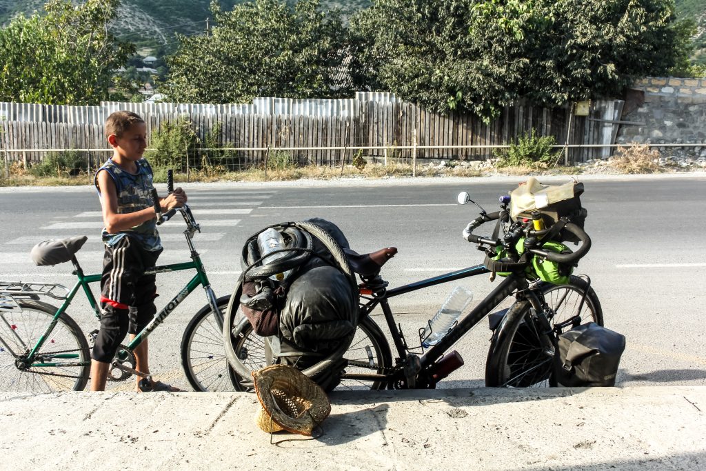We were accompanied for part of the day towards Sheki by four kids on bicycles of their own whom had wandered over to the bus stop where we were resting.