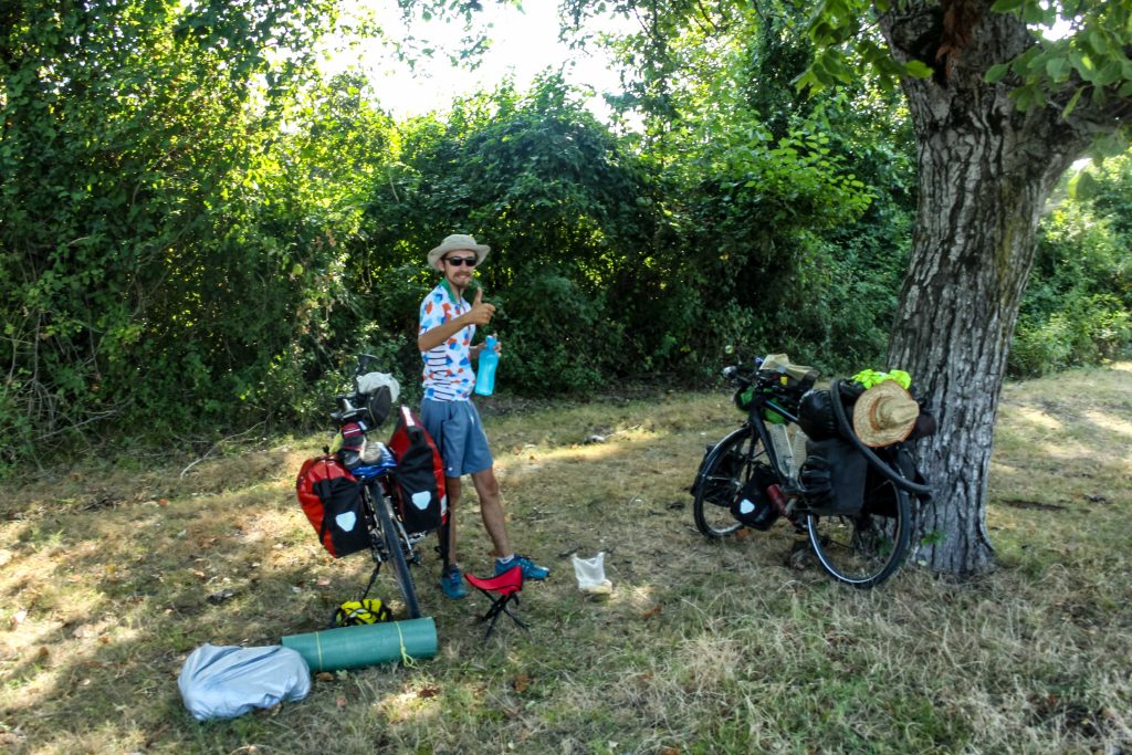A few km’s later we found a restaurant where the owner led us to the back to a lovely shaded camping spot and with two ice cold beers to enjoy, it was a great way to end our last day on the bikes.