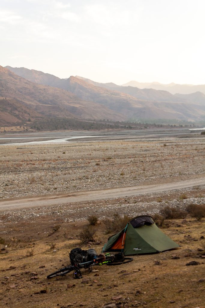 It was getting dark by six pm now and only ten km’s past the junction we decided to call it a day when we found a nice patch of grass by a stream. It looked perfect. It felt perfect. It was any anything but perfect.