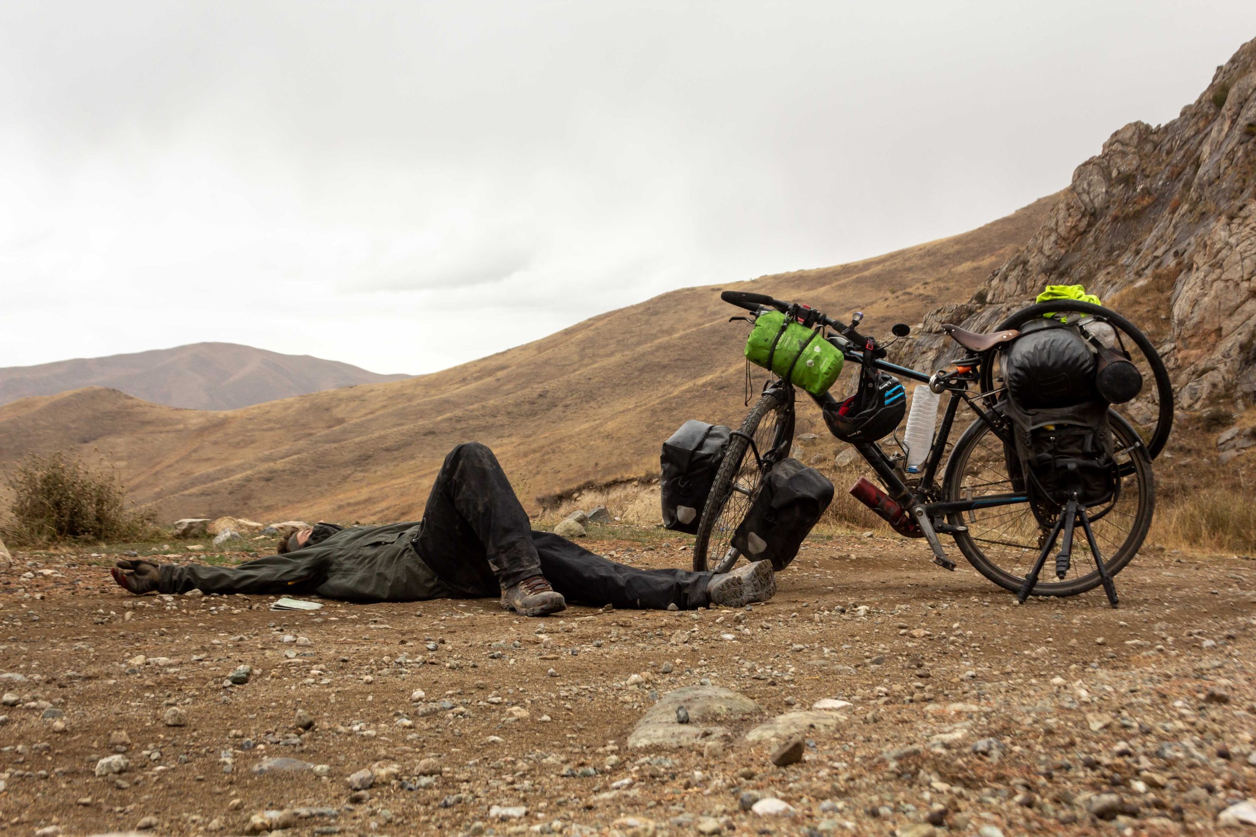 I just wasn’t feeling it though. I just couldn’t get myself motivated. I was soaked to the bone and my bike now weighed so much more with my soaked gear. I had a wet sleeping bag to look forward to snuggling up into come the evening, 550 km’s of terrible roads to ride and a mountain pass to climb that just wouldn’t leave my thoughts. Brecht suggested we take a stop in order to have a long rest and hopefully get this stuff dry. I agreed without hesitation.