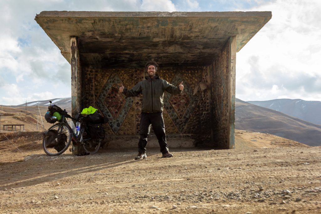 As I rounded the last bend, I saw the road flatten out somewhat and spied some derelict building at the next crest and so willed myself to get there. It must be the summit! That last kilometre was the hardest. I don’t know how I managed it but I got back on my bike and crawled at a snail’s pace towards the finishing line and I finally found the world’s loneliest bus stop. It was a joyous and momentous moment.