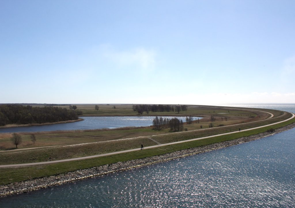 It took me a while the next day to find the bicycle path that ran across the bridge, taking me out three km’s through farmland before finally arriving at the bridge proper. Cycling over it was just impossible however. The wind was coming directly from the east on my right and I had to push my bike 2 km’s across, whilst at the same time, crouching down in order to steady myself. It was unbelievable and at one point thought my trousers would come flying off. My spit even flew cross four lanes of traffic into the ocean on the other side. It was horrendous.