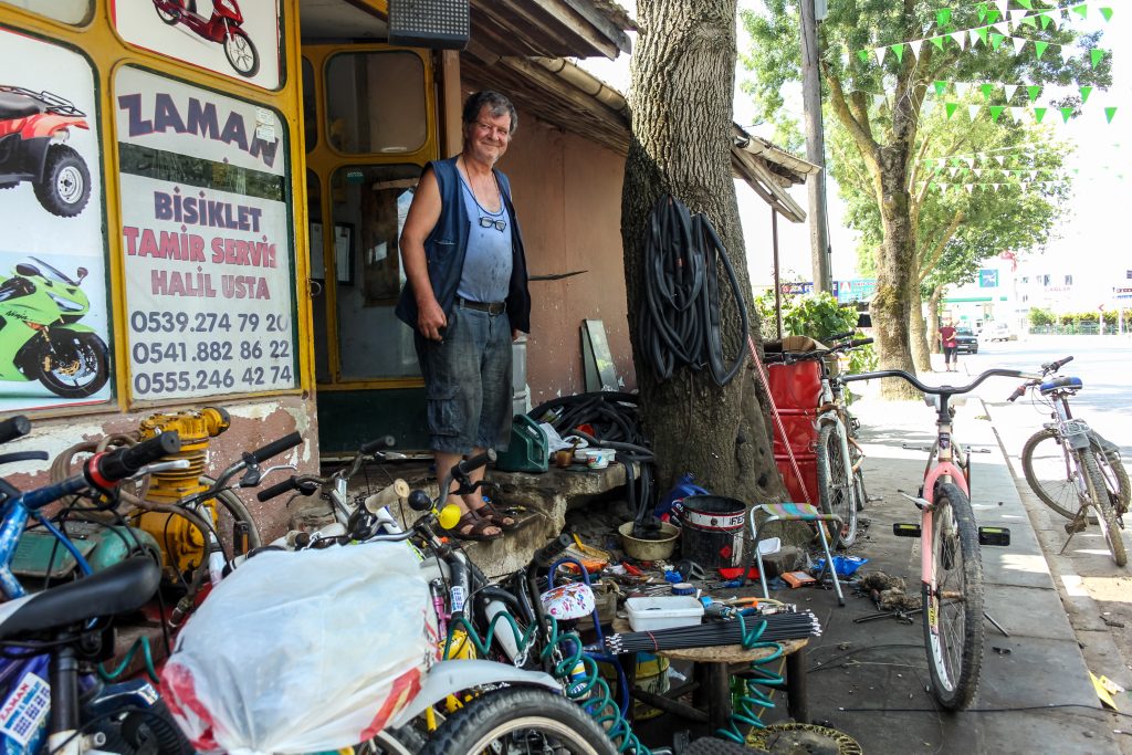 Sile was a small town where auto repair shops and gas stations stood side by side. About a kilometre down the main street, I found a small dilapidated bike shop where two men sat outside drinking coffee.