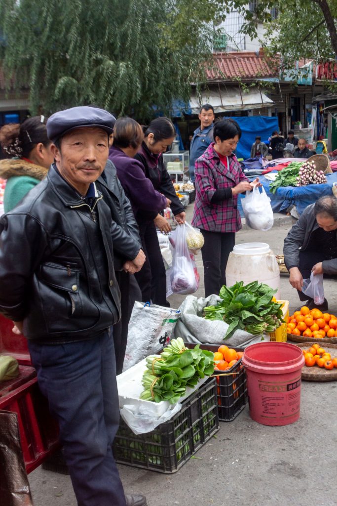 Thankfully the day turned out to be relatively flat and I was soon in the city of Wenxian where I stopped to buy some more food at the supermarket and where I was followed around the store by the ever inquisitive shop assistants. Next I headed to the market to pick up some more vegetables. I do love these places. Everyone it seems grows their own vegetables and then sells whatever they think they won’t need personally down in the town or village centre. When I say all the land is used for something, I really mean it. I often see the smallest patches of earth in the most unlikely of places being used for the growing of crops, for example a one squared metre patch of earth right in the middle of a hairpin bend on a steep and winding road. It’s quite crazy really.