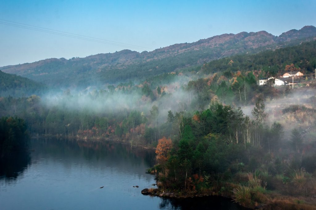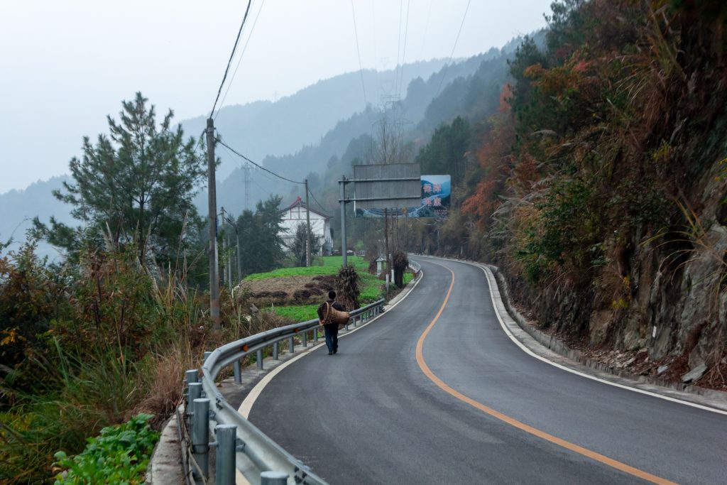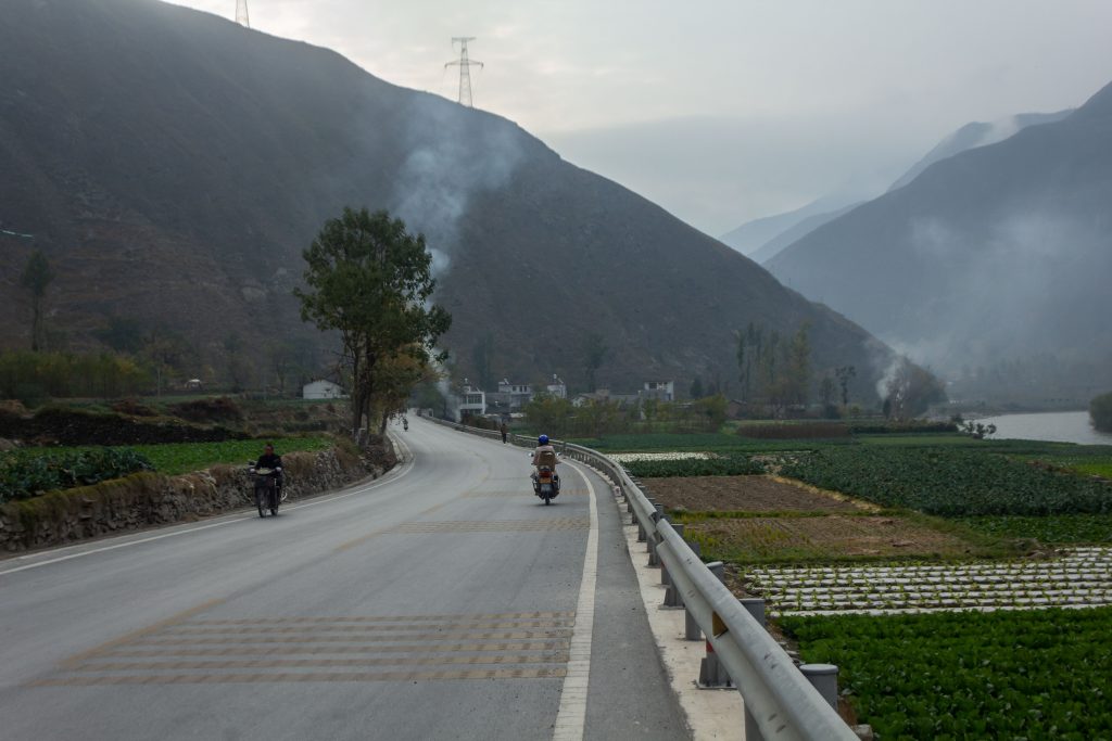 I woke up the next morning to a world shrouded in mist – something which I did expect in this area of China. I pushed my bike back from the mud towards the road and made my way through the well-lit tunnel without the presence of any vehicles to beep at me.