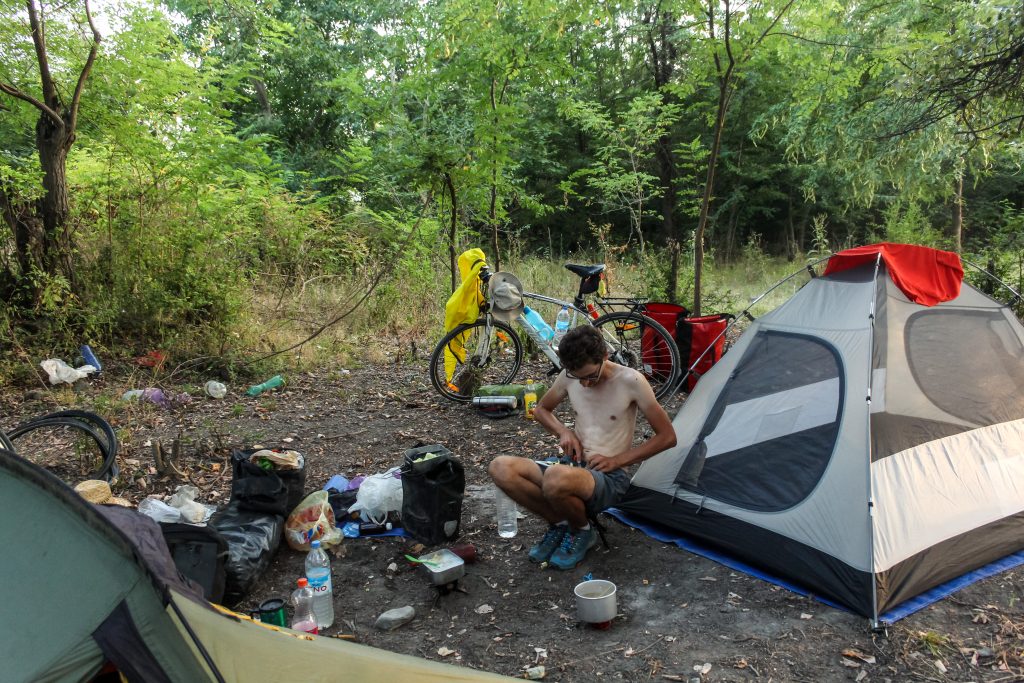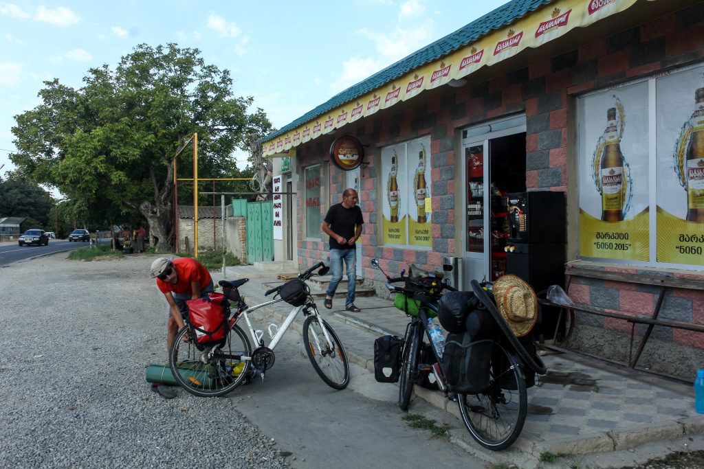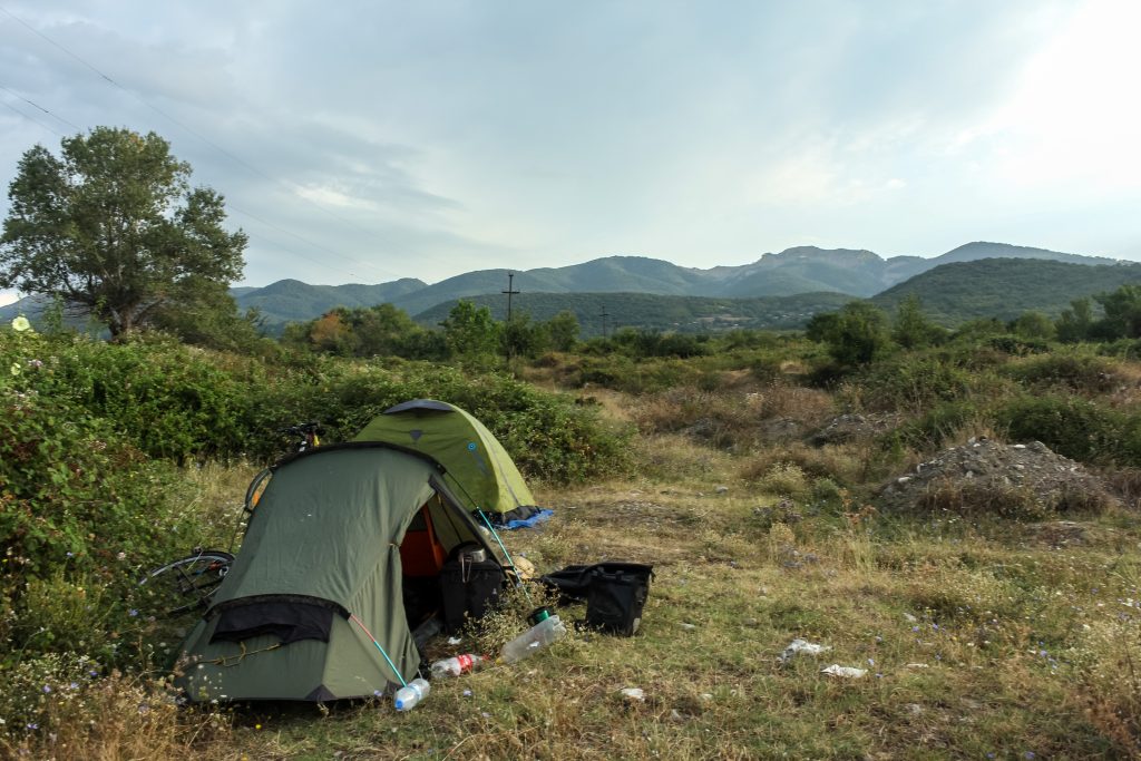 After some more seriously steep climbs and a stop off at a small market where we met Georgia’s most grumpy shop owner, the road finally flattened out and we were able to find a brilliant camping spot after 60 km’s. This was probably my shortest day cycling but like I said, we were in no rush. We pitched up by the side of a small lane leading into a village at the foot of the mountains, and although several cars drove passed and waved at us, no one was bothered we were camping there. Such a refreshing change from Europe where you literally have to hide every single night from fear of being moved on.