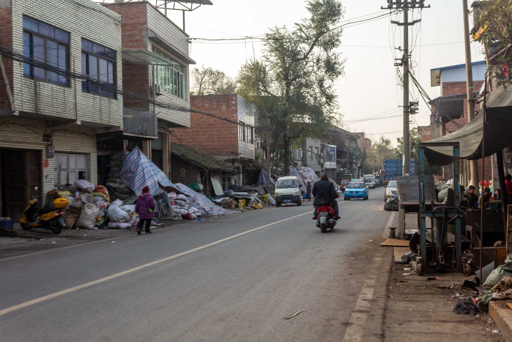 After the city of Neijiang, the highway swept its way south east again. Pretty soon, I entered a very hilly section which could only be described as Sichuan’s dumping ground of unwanted commodities. For 25km’s, the road was lined with village after village that had, over time, merged together. The only way I was able to decipher when I was in the next village would be that it would be the host to a different assortment of junk in great piles lining the road. If one village had huge piles of children’s toys stacked up in three metre piles, then the next village would be the same but covered in scrap metal or car tyres or something. The whole area just felt dirty