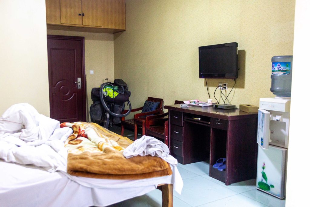With his shop left completely unattended, we drove/cycled down the street and around the corner where he negotiated a fairly decent price for me at a hotel but where I was later told I would not be permitted to stay on account of my complete lack of Chinese heritage. The problem was resolved however with my new friend using his Identity card in order to check me in. Job done.