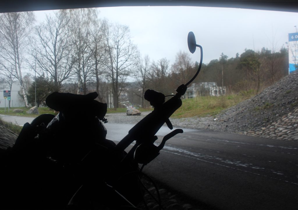 I took some time out under the motorway in order to gather my thoughts before setting off again. Two men told me that if I crossed a nearby bridge and followed the sound of the motorway, then I would eventually be led into Stockholm. Well this is what I did and sure enough, I found some bicycle signs that directed me towards the centre. At last.