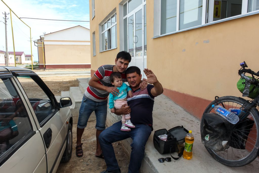I sat outside and savoured a rare moment of relaxation before a car pulled up and out stepped two Uzbek men. More photos and questions followed and I was again handed some freebies through the shop window. All in all I received a huge chunk of meat, fresh water, bread and tomatoes as gifts. I thought that stopping to chat was becoming quite a profitable venture for me. Perhaps I won’t need to change so many dollars after all…..