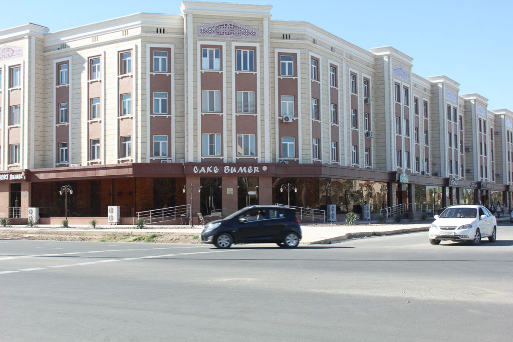I came across a small town on the left of the road a little later on. Running precariously low on water and wanting for a cold drink and perhaps some vegetables, I turned off the highway to have a look. It was a peculiar town where every building was identical and almost brand new. It was eerily silent too except for some people walking around in overalls. I genuinely thought I might have wandered into and army barracks or something but upon questioning some people in white jump suits, as to the whereabouts of a market, found out that it was indeed just an oddity of Uzbekistan.